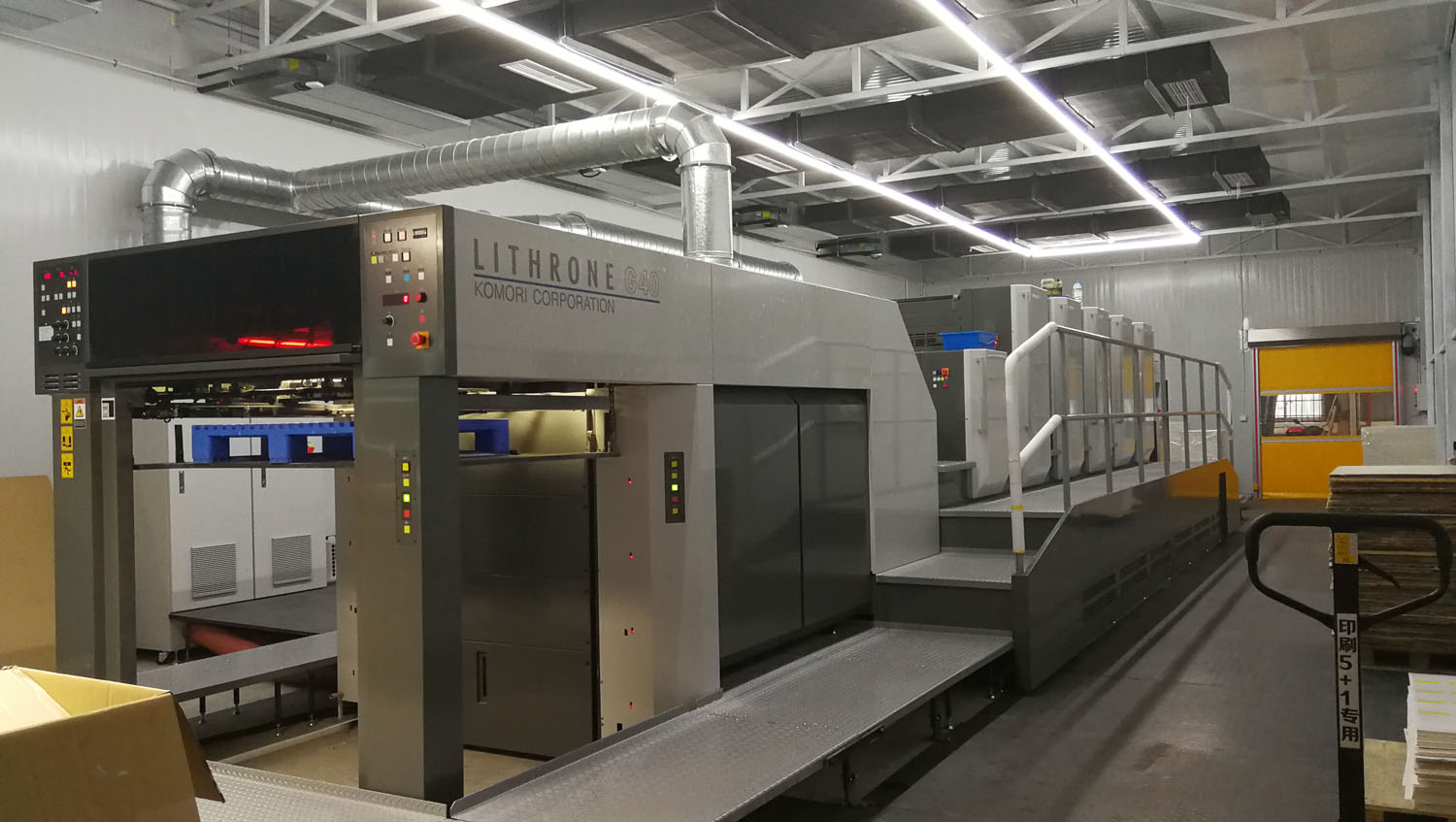 车间内分为CTP版房、印刷车间、模切区、检品区、粘盒区。其中,印刷车间今年购买安装了一台全新的5+1日本小森印刷机。小森印刷机具备出类拔萃的产品质量和无与伦比的可靠性能。目前,小森公司向全世界54个国家和地区出口各类印刷设备和相关产品。我们选择小森印刷机器,也是看中它是行业中的一流设备,能够为持续我们印刷出优质的产品,让我们的顾客使用起来很放心。这台印刷机将传统的印刷和上油工艺综合到一起,提高了生产效率,同时印刷出的产品图文在下机时就已经固化,不会出现两道工序分开生产那样因油墨未干造成刮花的质量问题。整个印刷间地上铺设防滑钢板,配套设施合理完善,车间宽敞明亮,干净整洁,让人工作时有一种非常愉悦心情。