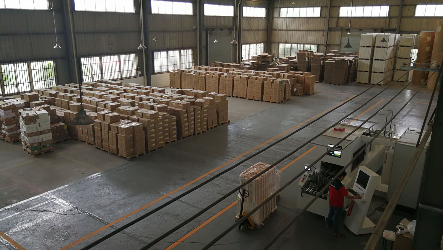 俯瞰整个后工序车间,规范整洁,摆放有序,俨然一个安全生产标准化的厂房。